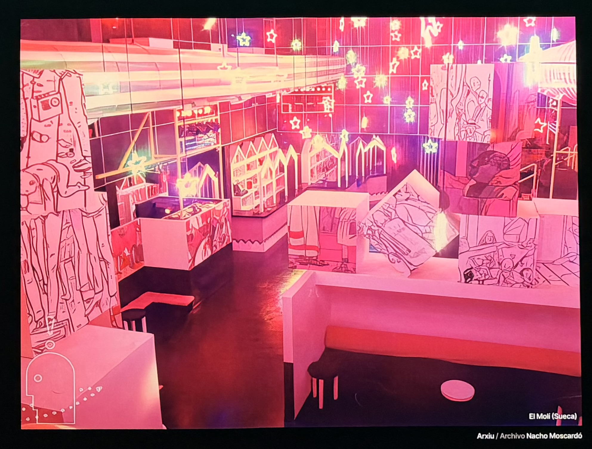 Em vaig inclinar cap al disseny de discoteques perqué ací em deixaven fer el que em donava la gana. Sempre donava als meus projectes un toc de magia perque fora una cosa nova, però mai agresiva o violenta. (Nacho Moscardó)